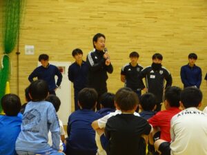 あいにくの天候で室内開催となりましたが、子どもたちも選手たちも汗を流しながら全力でサッカーを楽しんでいました🔥