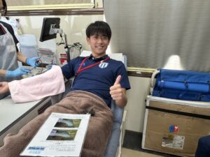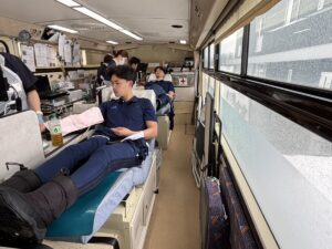 クラブハウス前に2台の献血車が設置され選手・学生スタッフ・スタッフ合わせて約90名が参加しました!